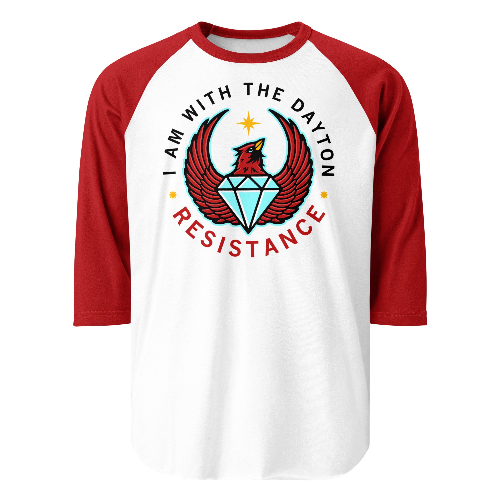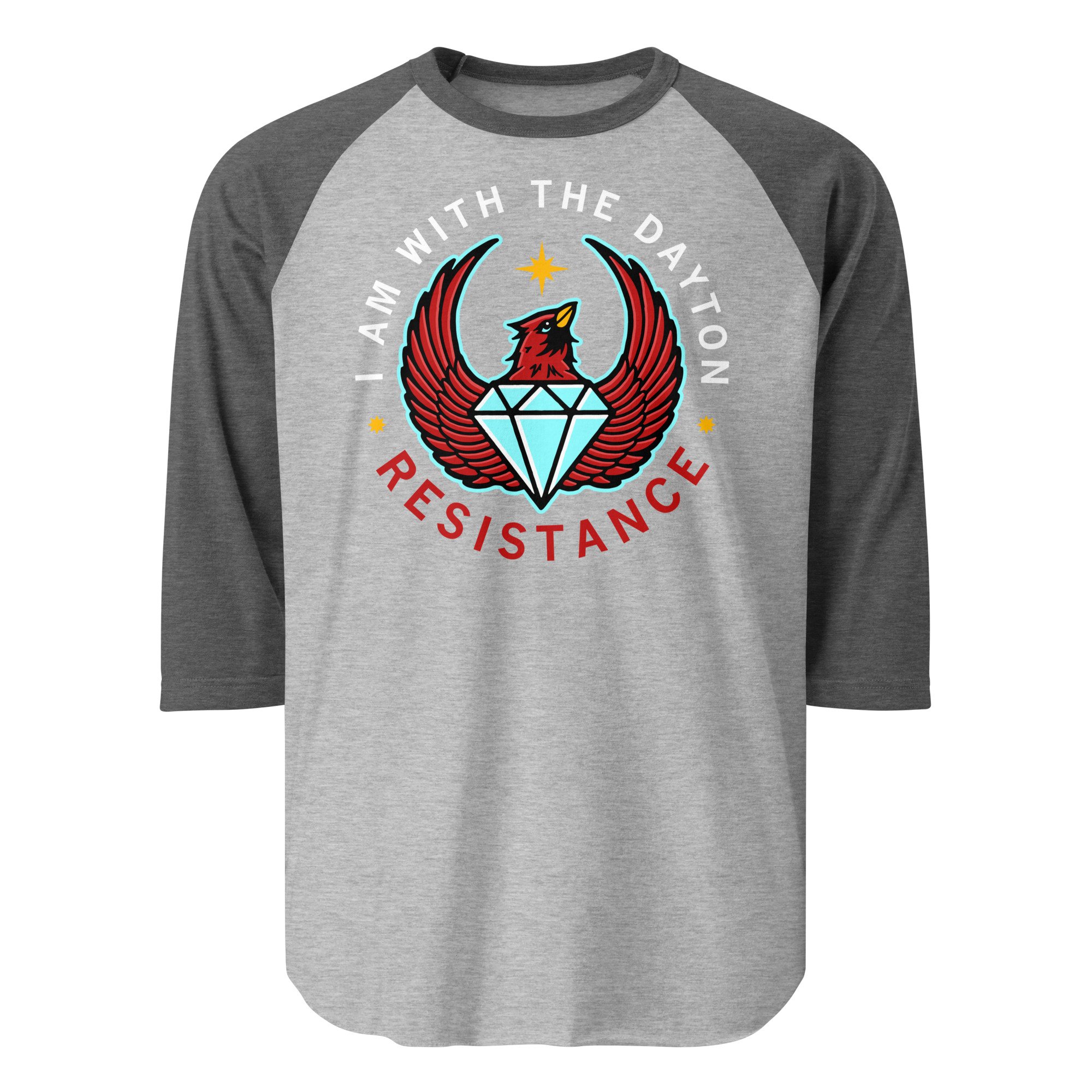 The Dayton Resistance raglan is built around local symbols—the state bird and the Gem City. Made for those who rep Dayton, on the streets or standing their ground.